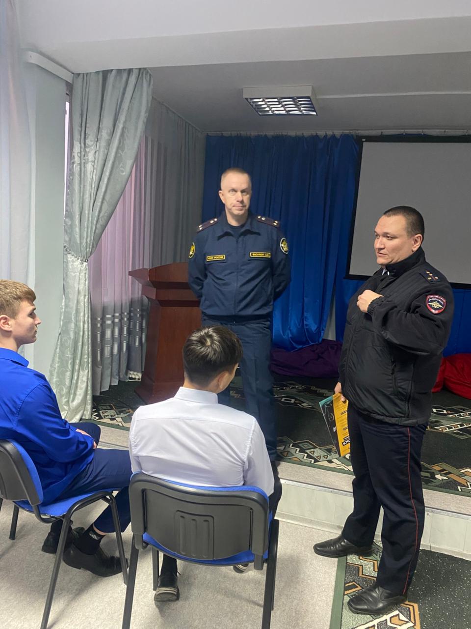 Продолжая тесно взаимодействовать с силовыми структурами, исполняя намеченное Планом воспитательной работы, наше СУВУ, 11 декабря встречало гостей. В этот раз не только учащиеся, но и учителя были задействованы в беседе профилактической направленности. Начальник Советского межмуниципального филиала ФКУ УИИ УФСИН России по Калининградской области подполковник внутренней службы Олег Евгеньевич Василюк совместно с начальником отделения по делам несовершеннолетних МО МВД России «Неманский» капитаном полиции Дмитрием Ивановичем Падалко напомнили про административную и уголовную ответственность за совершение тех или иных противоправных действий, а также довели информацию о нововведениях в уголовный и административный кодекс. Обучающиеся активно приняли участие в обсуждении предложенных ситуаций, с оценкой их правовой стороны. В целом получилась объёмная и познавательная встреча.