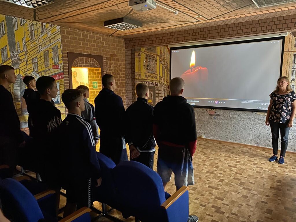 10 сентября в рамках кружка «Юный исследователь» в музейном кинозале учреждения прошло занятие «Колокол памяти», в ходе которого обучающимся рассказали о том, что это одна из самых трагичных дат в истории нашей страны и многих других государств, пострадавших от ужасов фашизма. Вспоминали и мирных жителей, погибших под бомбами, в концлагерях, от болезней и голода.