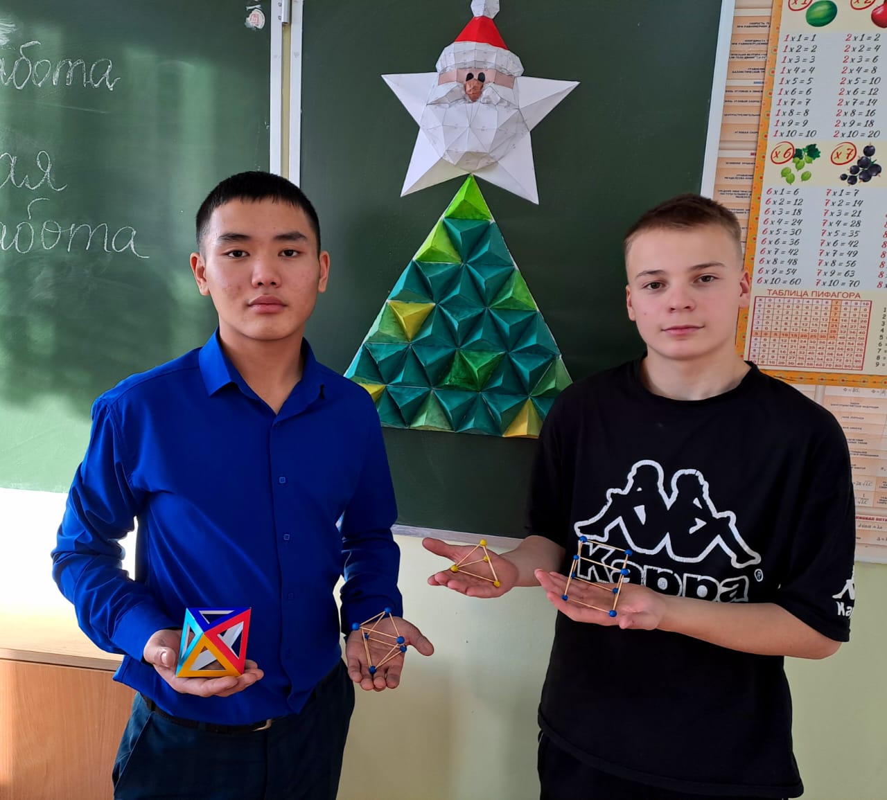 Одним из ярких событий недели стало создание елки из тетраэдров, каждый класс с увлечением работал над этой поделкой. Также обучающиеся изготовили 3D фигуру Деда Мороза из бумаги, что стало не только веселым занятием, но и замечательной возможностью познакомиться с трехмерными фигурами. Ребята проявили свои навыки в геометрии, создавая правильные многогранники из пластилина и зубочисток, игрушки на елку в виде октаэдра, куба, икосаэдра и т.д., тем самым комбинирую математику с новогодним творчеством.