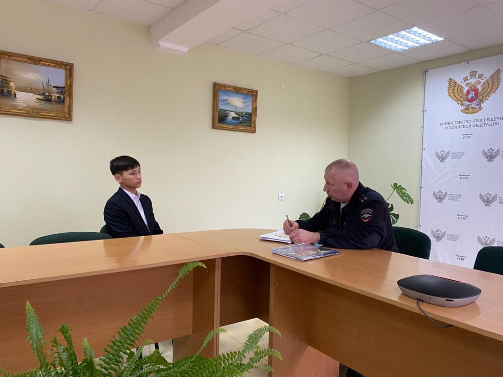 В разговоре с обучающимися сотрудник полиции рассказал о том, как не стать жертвой преступления: были подняты вопросы безопасности жизни и здоровья, а также ответственности за сохранность личных вещей. В ходе беседы ребята задавали вопросы, встреча прошла в лёгкой дружеской обстановке