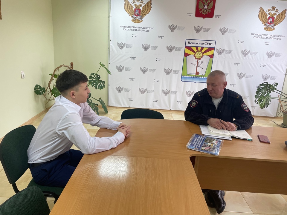 Эта встреча с подростками и проведение других плановых профилактических бесед, это неотъемлемая часть совместной деятельности педагогического состава СУВУ и сотрудников МО МВД России «Неманский».