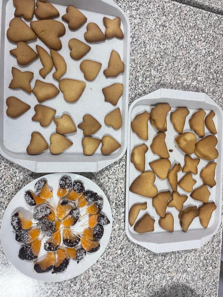 Для создания праздничной атмосферы ребята дополнительно сделали фруктовый десерт -мандарин в шоколаде с кунжутной посыпкой. После чего все дружно наслаждались чаепитием.