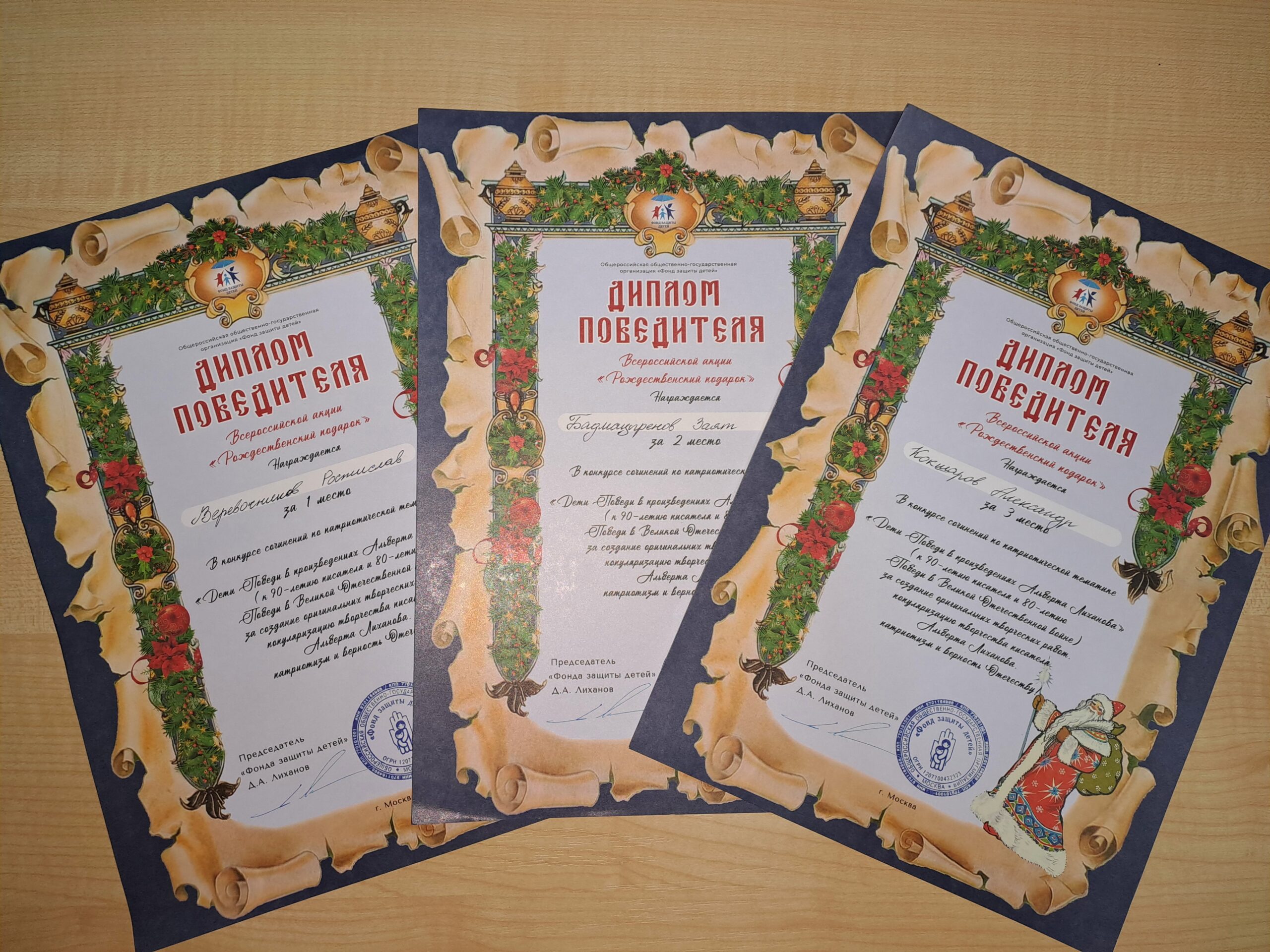 I место занял Ростислав В., II место – Заят Б., а III место – Александр К. Ребята были награждены дипломами и красочными книгами от Общероссийской общественно-государственной организацией «Фонд защиты детей», а наша библиотека пополнилась интересными журналами и литературными произведениями великих классиков.