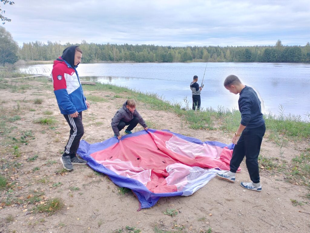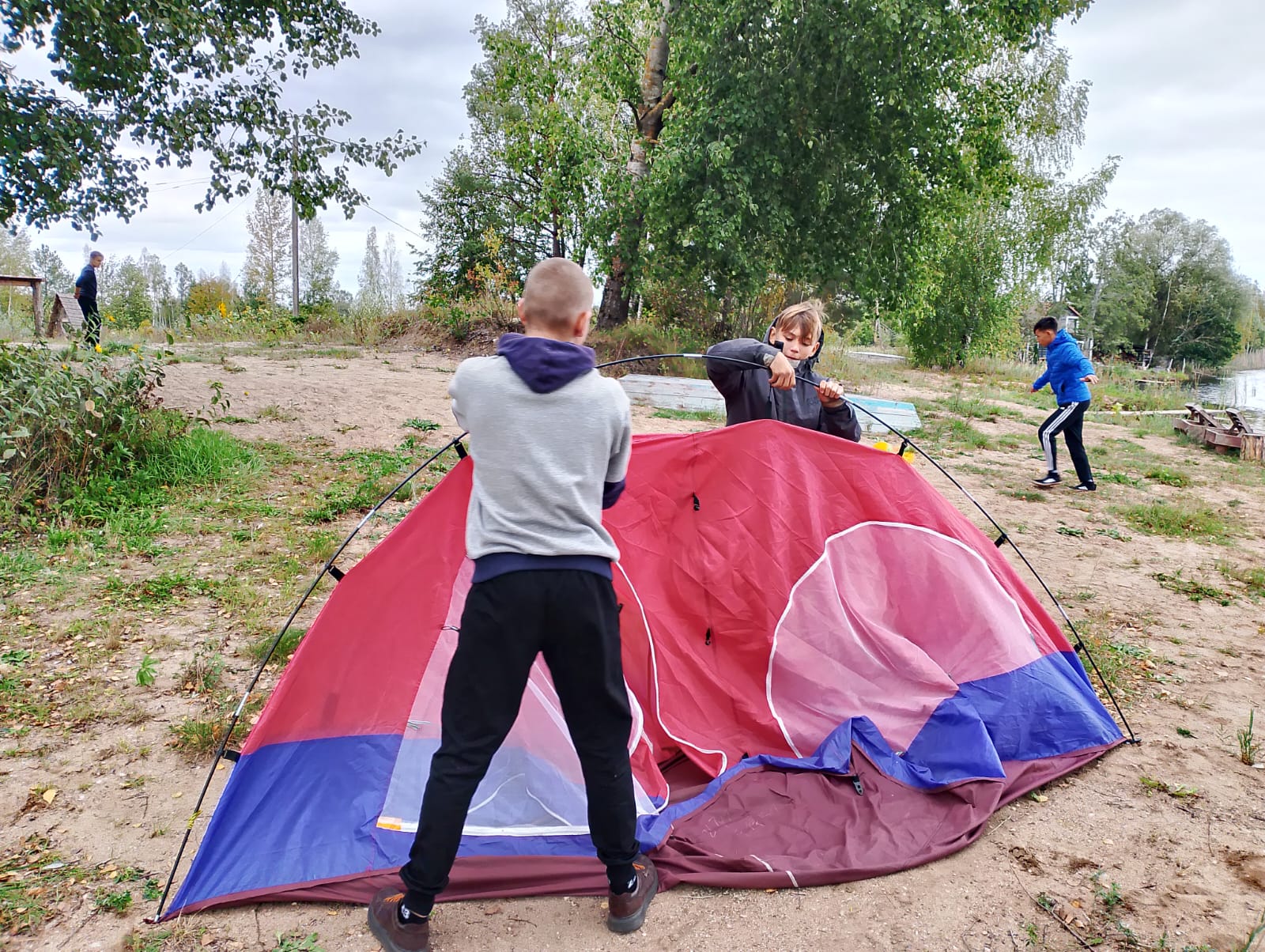 Облюбовав симпатичную полянку на берегу озера, разбили нехитрый лагерь. За время похода ребятам предстояло пройти испытания: сборке и разборке палатки, узнать, как правильно сложить рюкзак, ознакомиться с техникой вязания узлов, закрепить знания о правилах поведения во время похода.