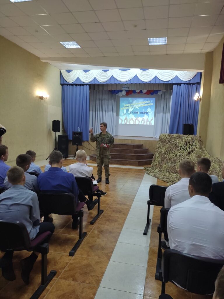 В течение недели в Неманском СУВУ проходили мероприятия, посвящённые этому трагическому событию. Так, 5 сентября к нам с визитом приехали наши социальные партнеры: специалисты Министерства молодёжной политики КО, «Центра молодежи», военно – патриотического центра «Авангард» г.Калининграда.