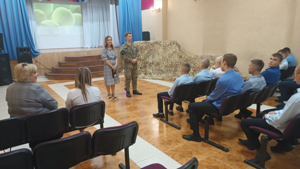 На встрече состоялся разговор с участником СВО Иванченко Н., где поговорили о Дне солидарности в борьбе с терроризмом, о том, как действовать если стал заложником. Николай проговорил с ребятами о специальной военной операции с исторической точки зрения (как преподаватель истории), а также в практической части (как участник БД). Мальчишки внимательно слушали, задавали взрослые вопросы, на которые наш гость с удовольствием отвечал.