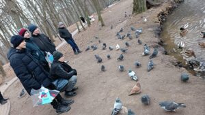 Прошли по извилистым улочкам бывшего города Кранц, побывали у главной новогодней елки города, с интересом рассматривали архитектуру и новогодние украшения бывших прусских домов, навестили жилой квартал, где обитают кошки, прогулялись по городскому парку, покормили птиц в Тортилином пруду.