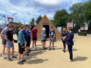 Ребята посетили открытый карьер, где ведётся промышленная добыча янтаря. Достопримечательность мирового масштаба — здесь находятся самые большие залежи этого камня. Поэтому в поселке работает единственный в мире комбинат, добывающий и перерабатывающий «солнечный камень».