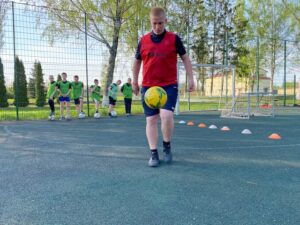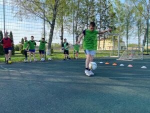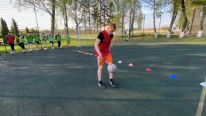 Жонглирование мячом одной или двумя ногами. Среди наших обучающихся был лучший Сердечный В., 6 класс. Его результат чеканки составил 78 раз.