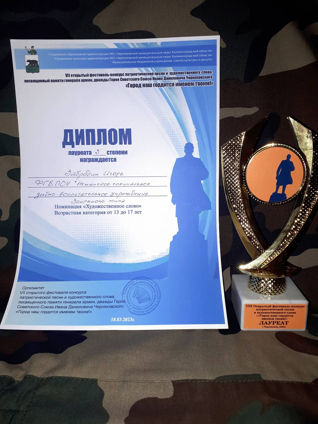 Обучающиеся А. Салахов, И. Забродин и В. Сердечный, под руководством педагога-психолога Салаева Э. Э. о, приняли участие в фестивале прочитав произведения отечественных авторов о Великой Отечественной войне. Все участники фестиваля получили дипломы за участие, а И. Забродин награжден дипломом лауреата III степени и памятным призом.