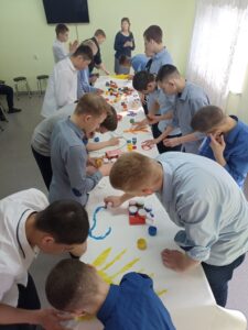 Получилось произведение искусств, совместно нарисованная яркая картина, которой решили украсить стены клуба.