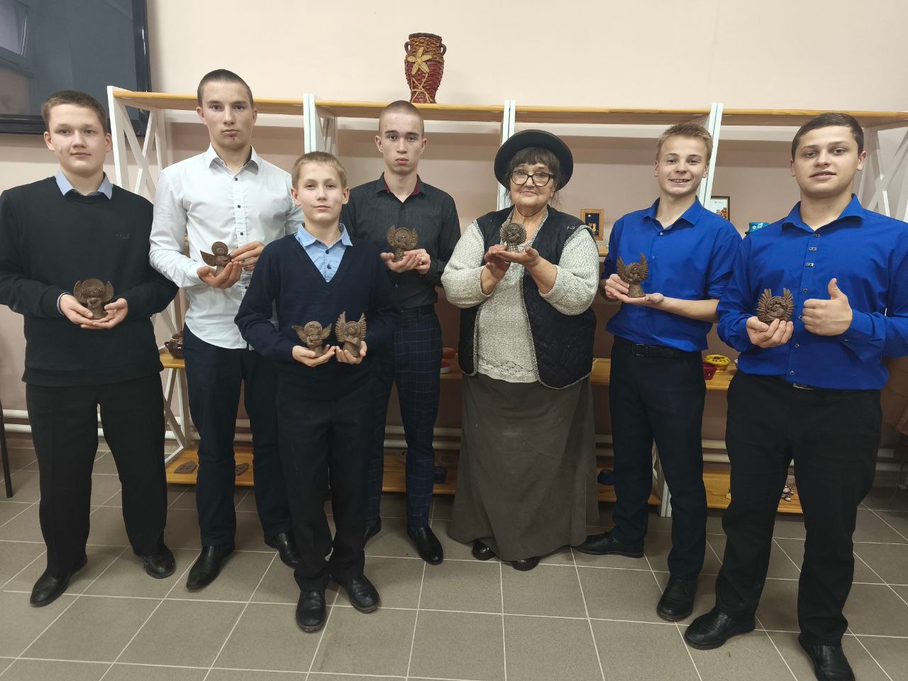 Ребята смогли попробовать себя в создании уникальных изделий из глины, используя древнюю технику ручного формования. Под руководством опытного мастера они создали фигурки ангелов-колокольчиков — символа чистоты, гармонии и вдохновения. Процесс оказался настолько захватывающим, что многие юные художники увлечённо трудились над своим первым творением.