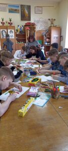 На празднике «Фантазёров» ребятам было предложено нарисовать или сделать эмблему дополнительного образования НСУВУ. Фантазии ребят не было предела! Все работы признаны лучшими и размещены на выставку. Особенно жюри отметило совместную работу Курочкина А, с мамой, которая приехала на каникулы и стала участницей всех мероприятий дополнительного образования.