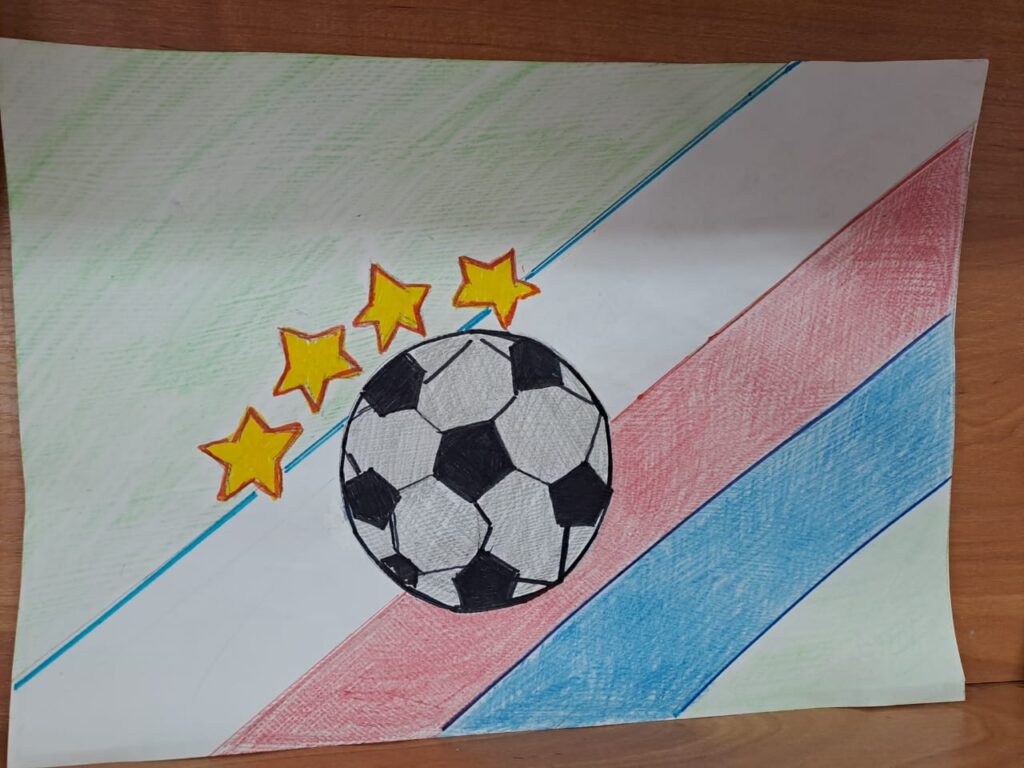 Рисунки можно было выполнить красками, фломастерами, гуашью, цветными карандашами. В творческом процессе приняли участие 9 обучающихся. Ребята старались, фантазировали, выражая свою любовь к футболу в рисунках.
