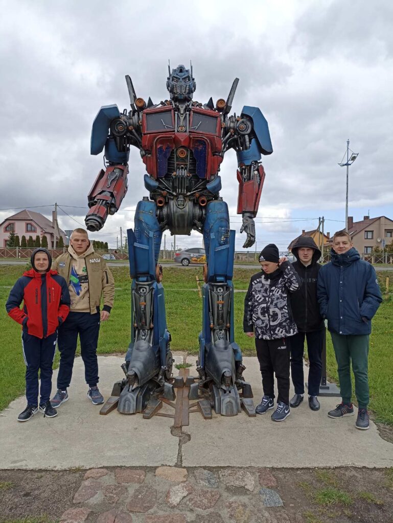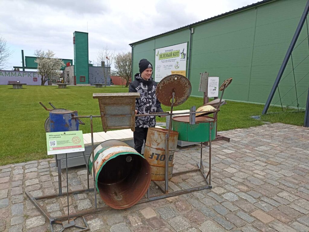 Мы увидели динозавра, Оптимуса Прайма из автомобильных запчастей и слона из корпусов старой бытовой техники, а также ударную музыкальную установку, состоящую из бочек разного размера. Мальчишкам понравилось – это было позитивно, экологично и необычно.