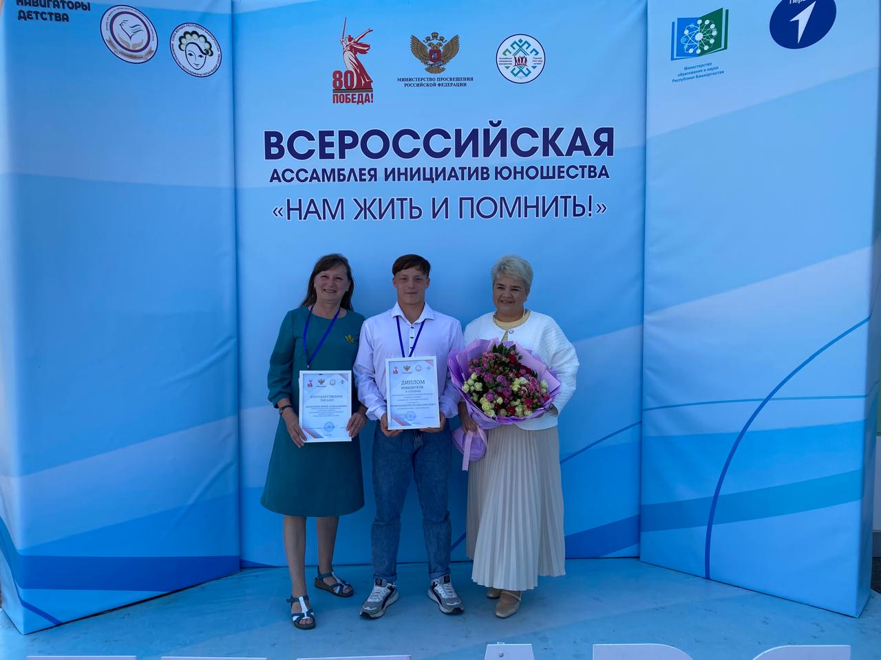 Наш обучающийся Ростислав В. вышел в финал с музейным проектом «Книга Памяти» в номинации «След войны в истории», занял почетное 2-е место и получил приглашение на торжественное закрытие Ассамблеи в Республике Башкортостан Ишимбайское СУВУ.