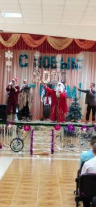 Конечно, по задумке новогоднего сценария присутствовали сказочные герои, главные из которых: Дед Мороз и Снегурочка! Хороводы, веселые игры, конкурсы, песни – всё, что необходимо для встречи Нового 2020 года. Также новогодними песнями и танцами пришли поздравить ребята из Дворца культуры г.Немана. По сюжету, как полагается в настоящей сказке, конечно, победило добро. У обучающихся остались яркие эмоции от праздника и сладкие подарки.