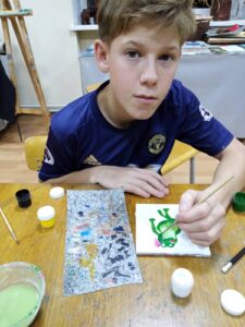 вновь собрала ребят на увлекательный мастер-класс по окраске и росписи керамической плитки.