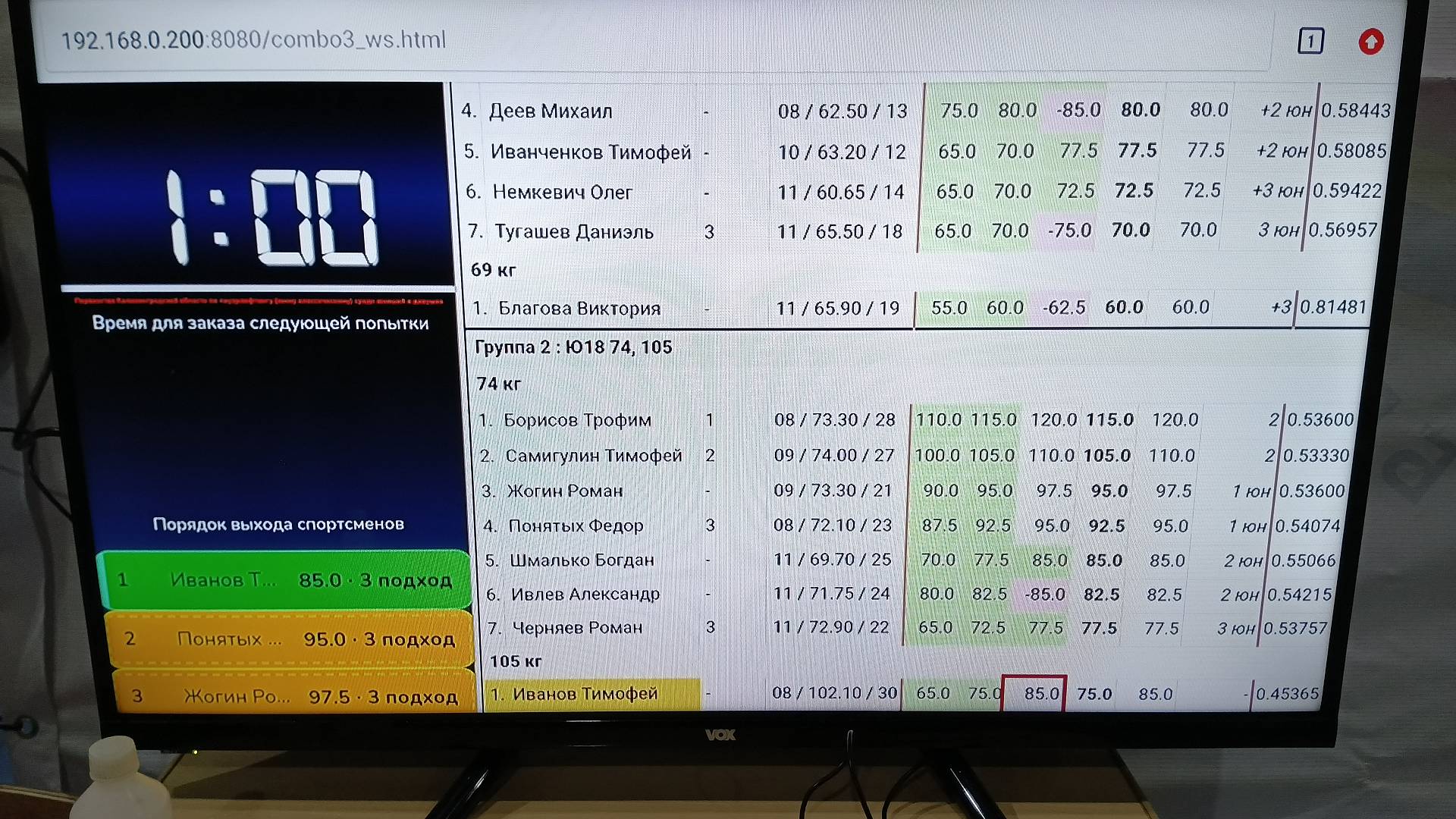 В этот раз проводили не традиционное силовое троеборье, а жим штанги от груди. Ивлев Александр в 74-ой весовой категории был на VI месте из восьми участников, а Ситников Виктор в 93-ой весовой категории был на IV месте из шести участников.