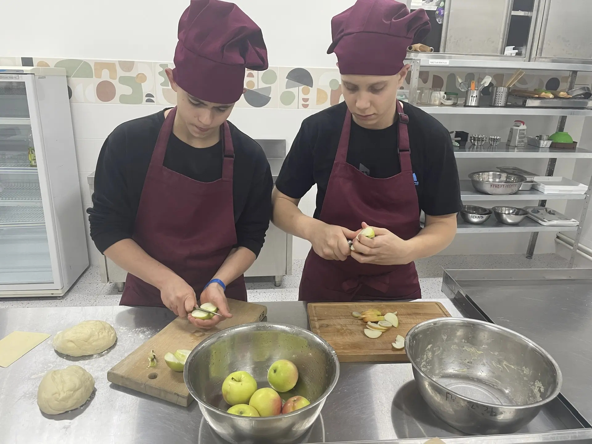 Под руководством своего педагога, Зенько Ирины Мечиславо, ребята с большим энтузиазмом взялись за дело. Они учились правильно замешивать дрожжевое тесто, нарезать тонкие дольки яблок, собранных в садах учебного хозяйства, и укладывать их красивым узором. Аромат корицы, ванили и свежей выпечки наполнил все помещение.