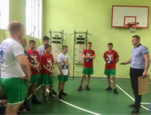 Они провели спортивный конкурс «Одень футболку вися на турнике» с нашими обучающимися. Всем, кто справился с заданиями, были вручены футболки от заслуженного тренера РФ Андрея Колесника.
