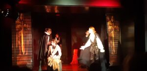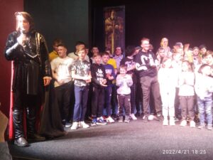 Это рассказ о том, как в рыцарские времена собирались в боевые походы, как обустроен был их быт. Главные роли были сыграны трудными подростками. В ходе представления много пели, танцевали, шутили. После окончания спектакля была организована пресс-конференция с актерами, в которой приняли участие наши ребята. Вопросы были разного характера: о том сложно ли быть актером, что делать если забыл слова, как выходить из разных форсмажорных ситуаций.