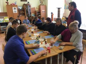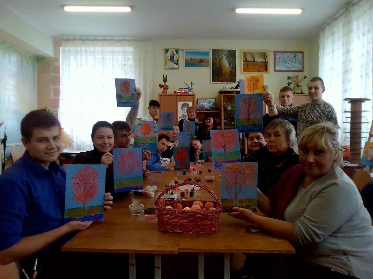 На этой встрече присутствовала заместитель Главы администрации Неманского городского округа Чергиченко Галина Сергеевна, которая отметила высокий профессионализм педагога и неиссякаемое желание ребят создавать красоту. В мастер-классе принимали участие все желающие, которых оказалось немало. Мероприятие получилось не только увлекательно-полезным, но и тёплым, дружеским, которое в очередной раз доказывает, что эти встреча далеко не последняя. В конце встречи руководитель Бабенко Римма Александровна поблагодарила исполняющую обязанности директора Неманского СУВУ Катаеву Анну Васильевну за тёплый приём, подарила панно из пуговиц «Кот», выполненное ребятами и сладкий торт. В ответ наши ребята подарили корзину с яблоками. Корзина выполнена из газетных трубочек. Вот такой получился обмен не только благодарностями, подарками, но и творчеством.