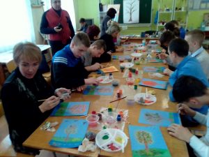 Педагог дополнительного образования Банит Марина Станиславовна показал мастер-класс по созданию рисунка с использованием различных техник, как с помощью не только кистей, но и металлических тёрок, ватных полочек дать волю творчеству.