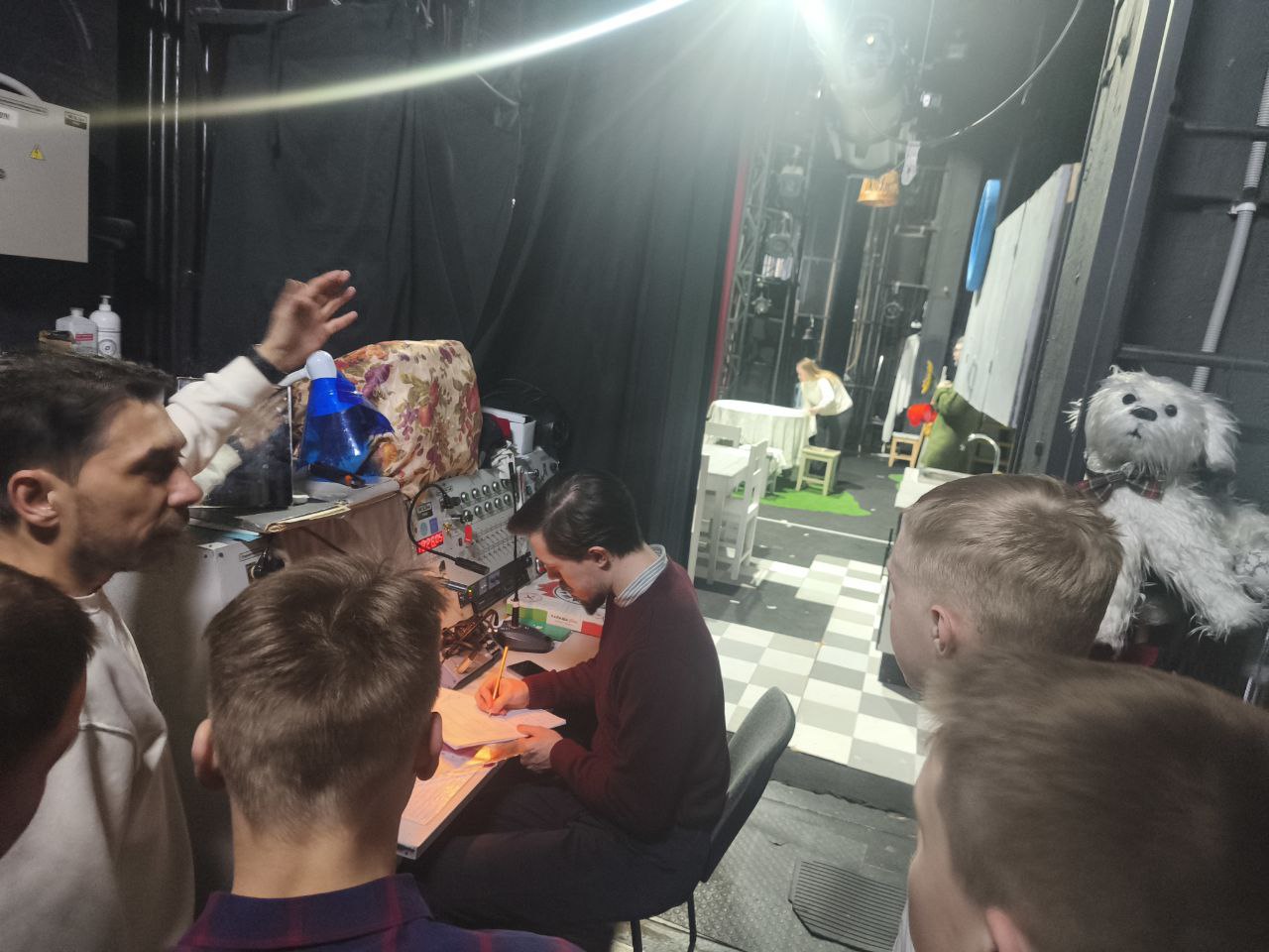Спектакль был очень познавательный, никого не оставил равнодушным. С посещением театра исполнилось новогоднее желание одного из наших обучающихся. Паша С. очень хотел побывать в закулисье, почувствовать театральную атмосферу изнутри. И мы побывали. Гримёрки и костюмы, сценические механизмы, репетиционные залы, сценическая команда — всё это, скрытое от зрителя, нам удалось увидеть своими глазами. Экскурсию провёл главный режиссёр театра Владимир Архипов. Непередаваемые чувства посетили наших ребят.