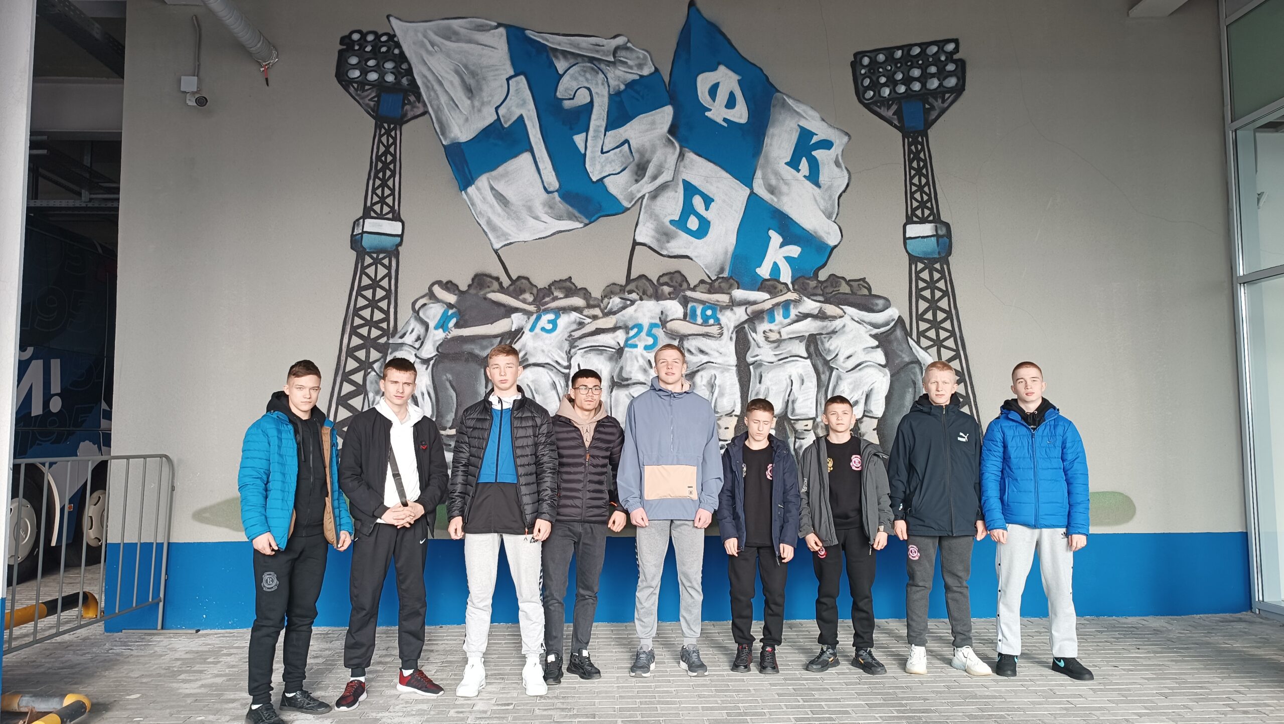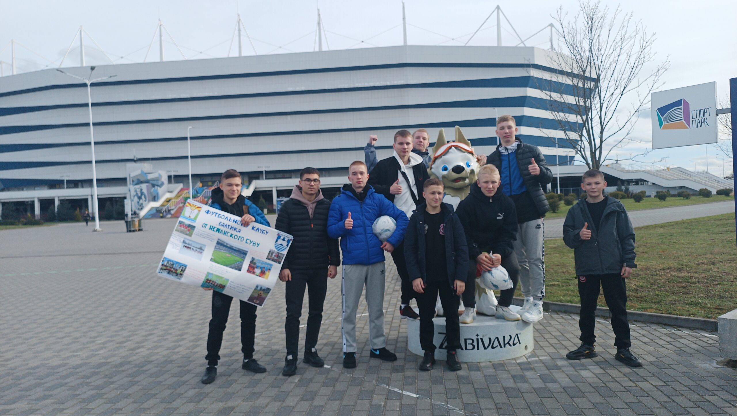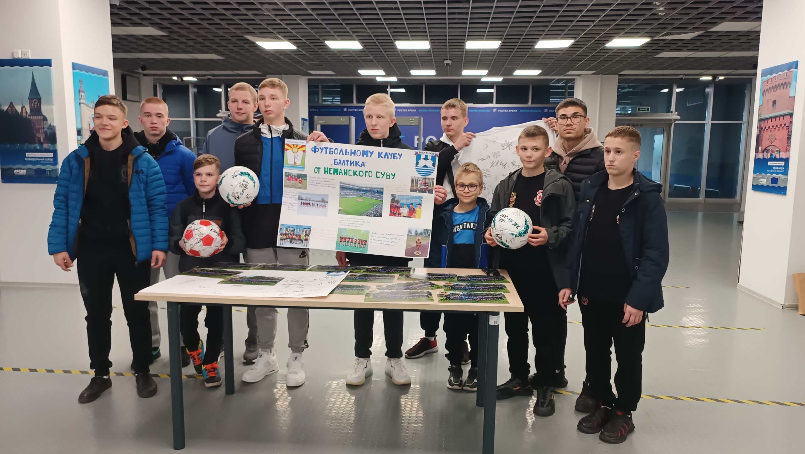 Наши ребята подготовили и привезли плакат со словами поддержки для команды «Балтика» на предстоящем матче с футбольным клубом «Пари НН».