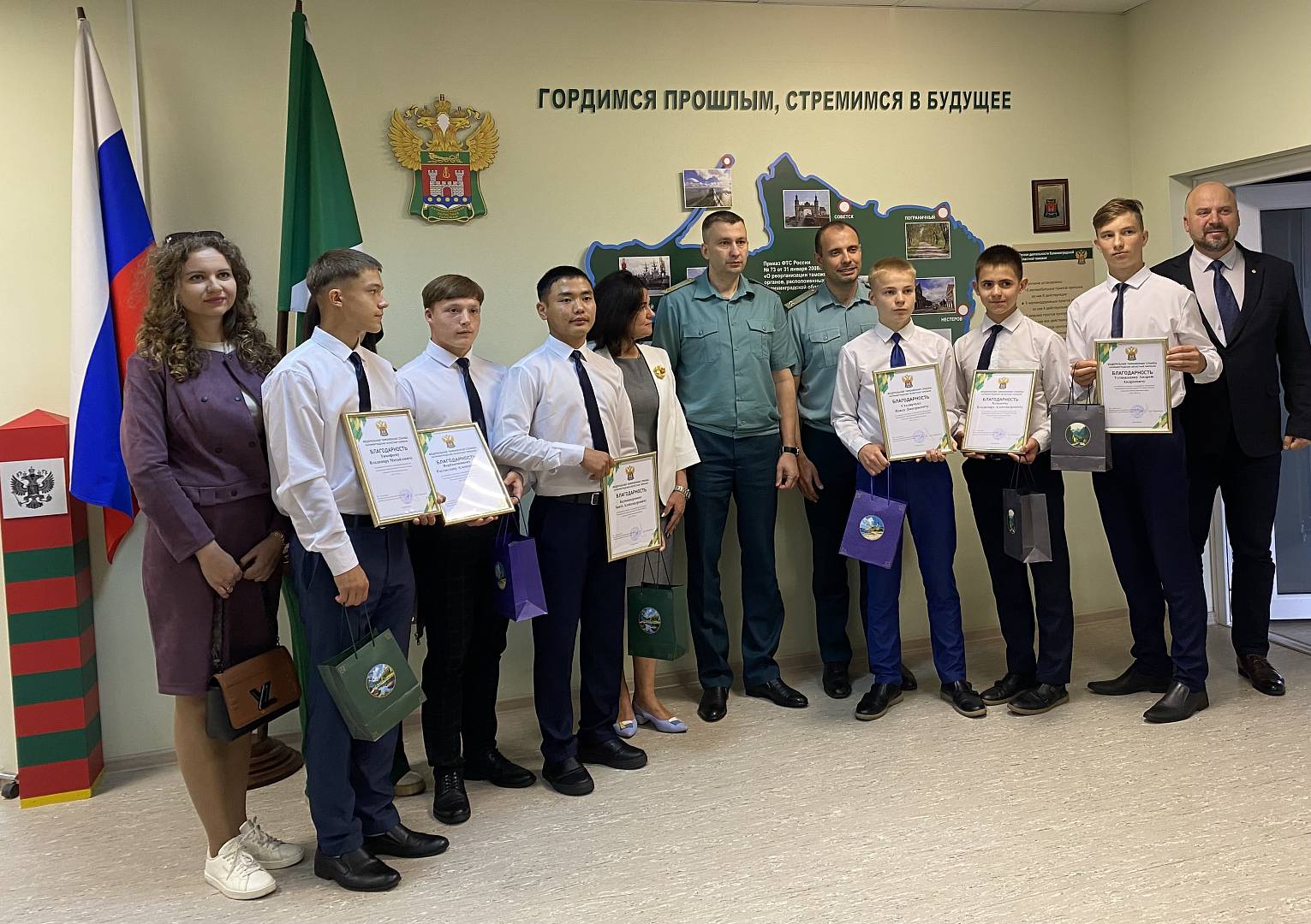 В июньские каникулы состоялась очень значимая встреча наших обучающихся с социальными партнерами из Калининградской областной таможни. Встреча началась с экскурсии по музею областной таможни «Гордимся прошлым, стремимся в будущее», посвященному истории таможенной службы. Ребята увидели старинные фотоаппараты и печатные машинки, коллекцию таможенных пломб, мундиры таможенников со всего света, даже действующий патифон и многие другие экспонаты, а также познакомились со знаменитыми людьми-таможенниками своего времени, после чего захотелось еще раз пересмотреть знаменитый фильм «Белое солнце пустыни». В конце экскурсии нашим обучающимся были вручены благодарности и памятные подарки за активное участие в концертной программе, посвященной празднованию 80-летия Великой Победы.