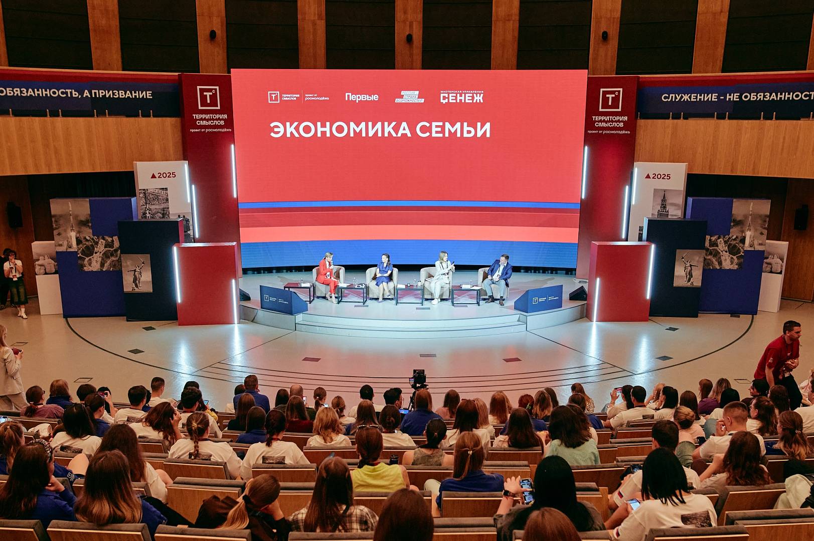 Во второй день смены «Семья» на форуме «Территория смыслов», который проходит в Солнечногорске Московской области, состоялась пленарная дискуссия «Экономика семьи». В мероприятии, на котором обсуждались инструменты поддержки молодых семей, приняли участие первый заместитель Министра просвещения РФ Александр Бугаев, заместитель Председателя Государственной Думы Анна Кузнецова и заместитель Министра науки и высшего образования РФ Ольга Петрова.