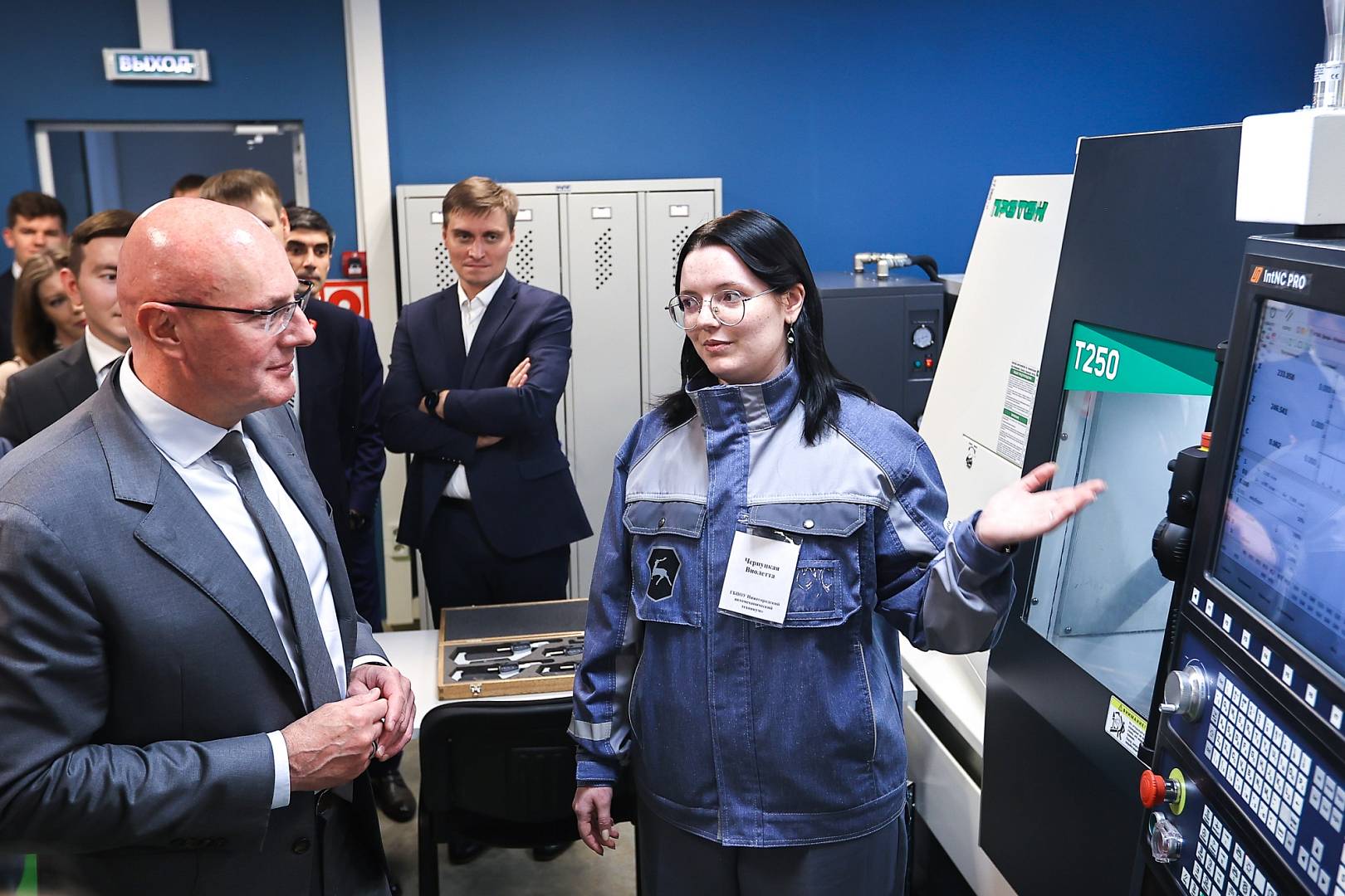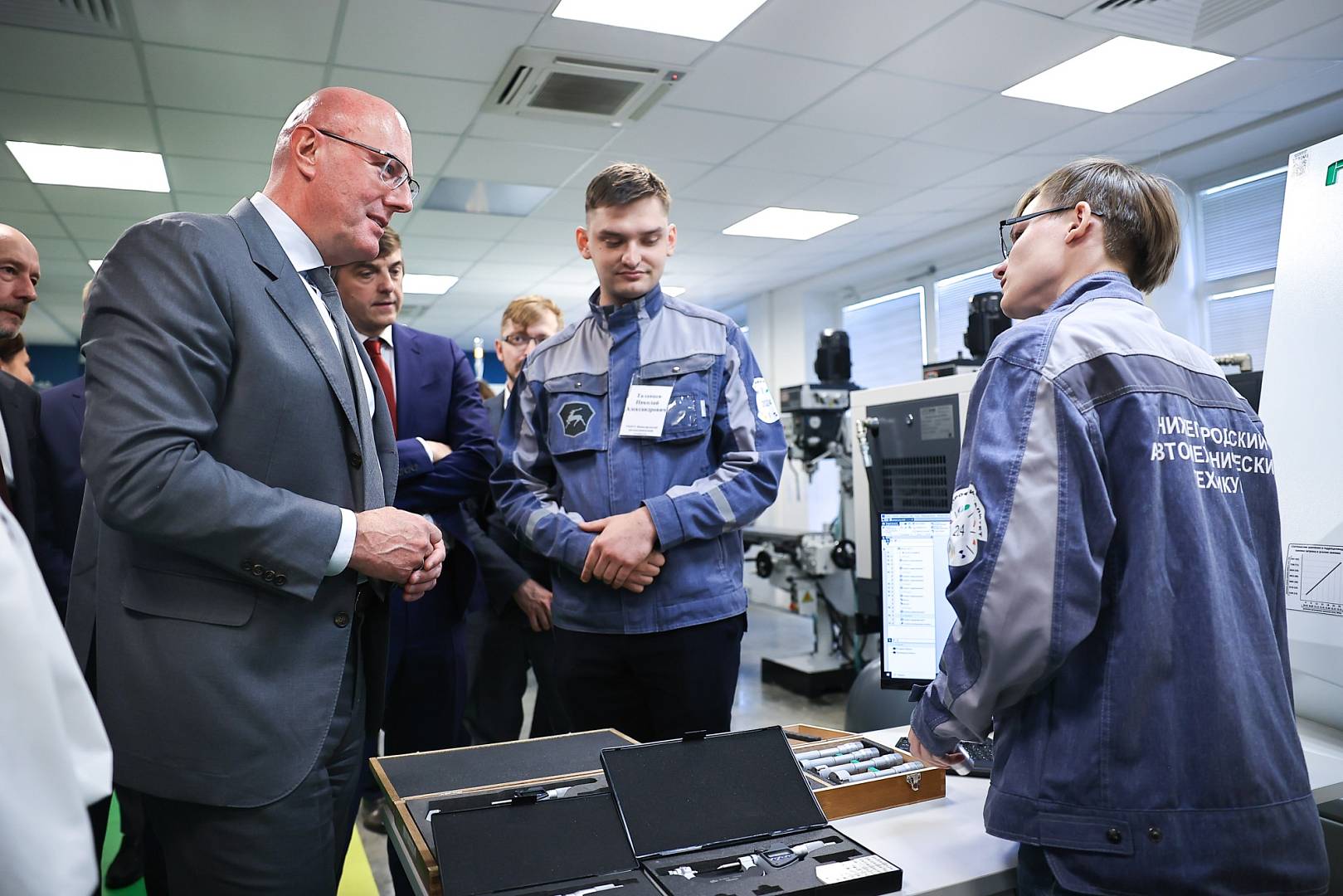В техникуме Дмитрий Чернышенко и Сергей Кравцов пообщались со студентами и преподавателями. Амбассадоры «Профессионалитета» ответили на вопросы гостей и описали, как они помогают школьникам в профориентации. Студентка Виолетта Чернуцкая рассказала о своем выборе карьеры и объяснила, для чего девушкам учиться работе на токарном станке.