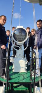 Знакомство началось с инструктажа по технике безопасности капитаном корабля. Затем ребят отвели в машинный отсек, где было показано и рассказано из чего состоит двигатель и как он работает. Далее экскурсия перенеслась на капитанский мостик, откуда были видны просторы рыбного порта. Экскурсия закончилась вкусным обедом в каюте для приема пищи, который организовали сотрудники таможни. Это была занимательная поездка. Спасибо нашим партнерам!