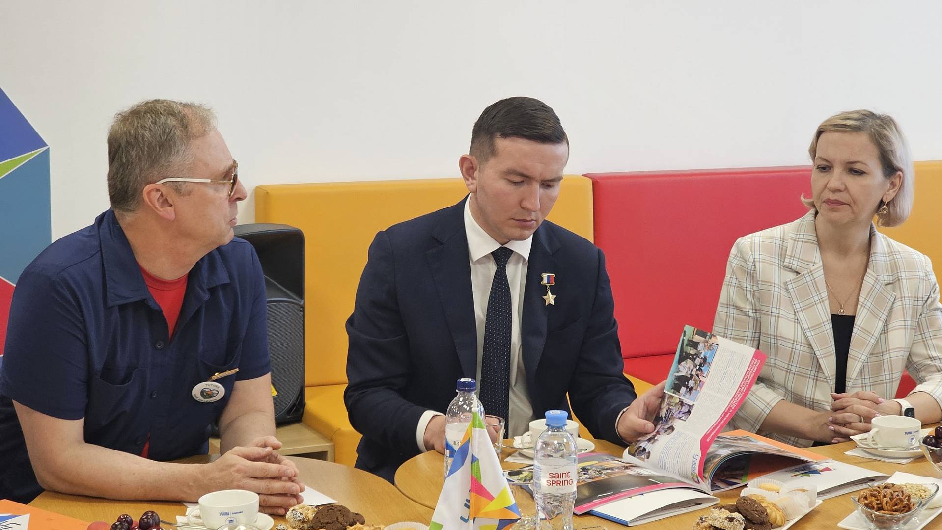 В ходе посещения Игорь Юргин и руководитель проекта «УчимЗнаем» Сергей Шариков обсудили накопленный опыт по реализации программ дополнительного образования: развитие творческих способностей детей, поддержку их индивидуальных интересов в интеллектуальном, нравственном и физическом развитии, формирование культуры здорового образа жизни и организацию содержательного досуга в условиях госпитализации. Большое внимание было уделено вопросам патриотического воспитания подрастающего поколения.