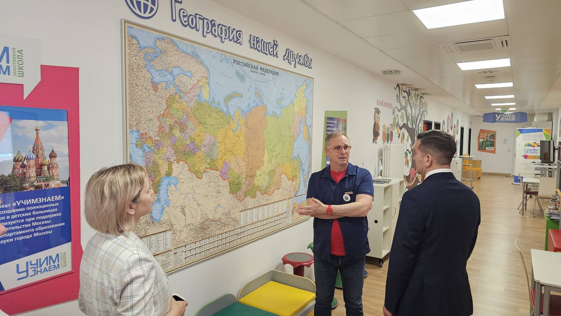 Директор Департамента государственной политики в сфере воспитания, дополнительного образования и детского отдыха Минпросвещения России, Герой Российской Федерации Игорь Юргин и заместитель директора департамента Лариса Бебешко посетили флагманскую площадку проекта госпитальных школ «УчимЗнаем» в Национальном медицинском исследовательском центре детской гематологии, онкологии и иммунологии им. Дмитрия Рогачева.