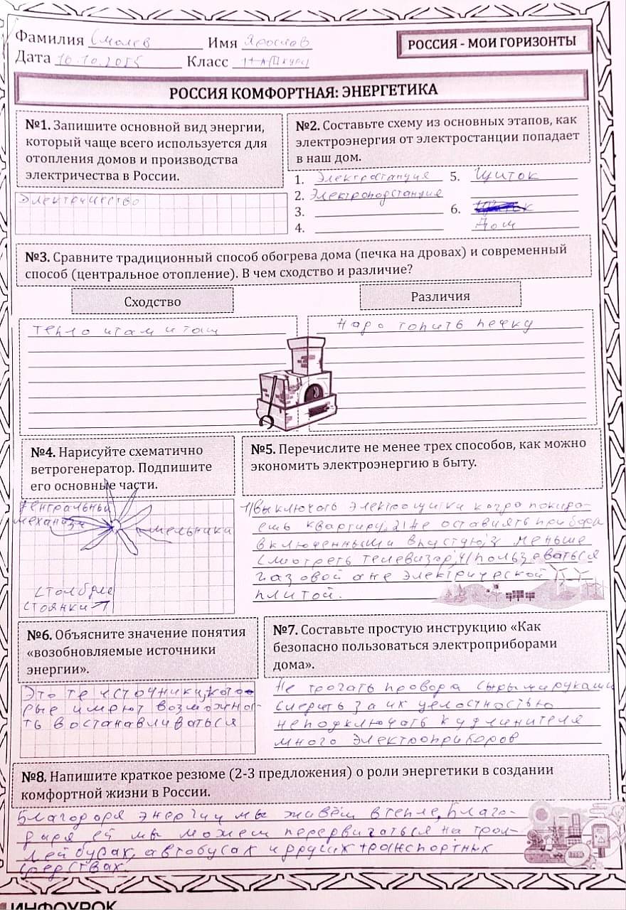 В продолжении профориентационной тематики учитель провел увлекательное занятие в рамках курса внеурочной деятельности «Россия — мои горизонты» по теме «Россия комфортная: энергетика».