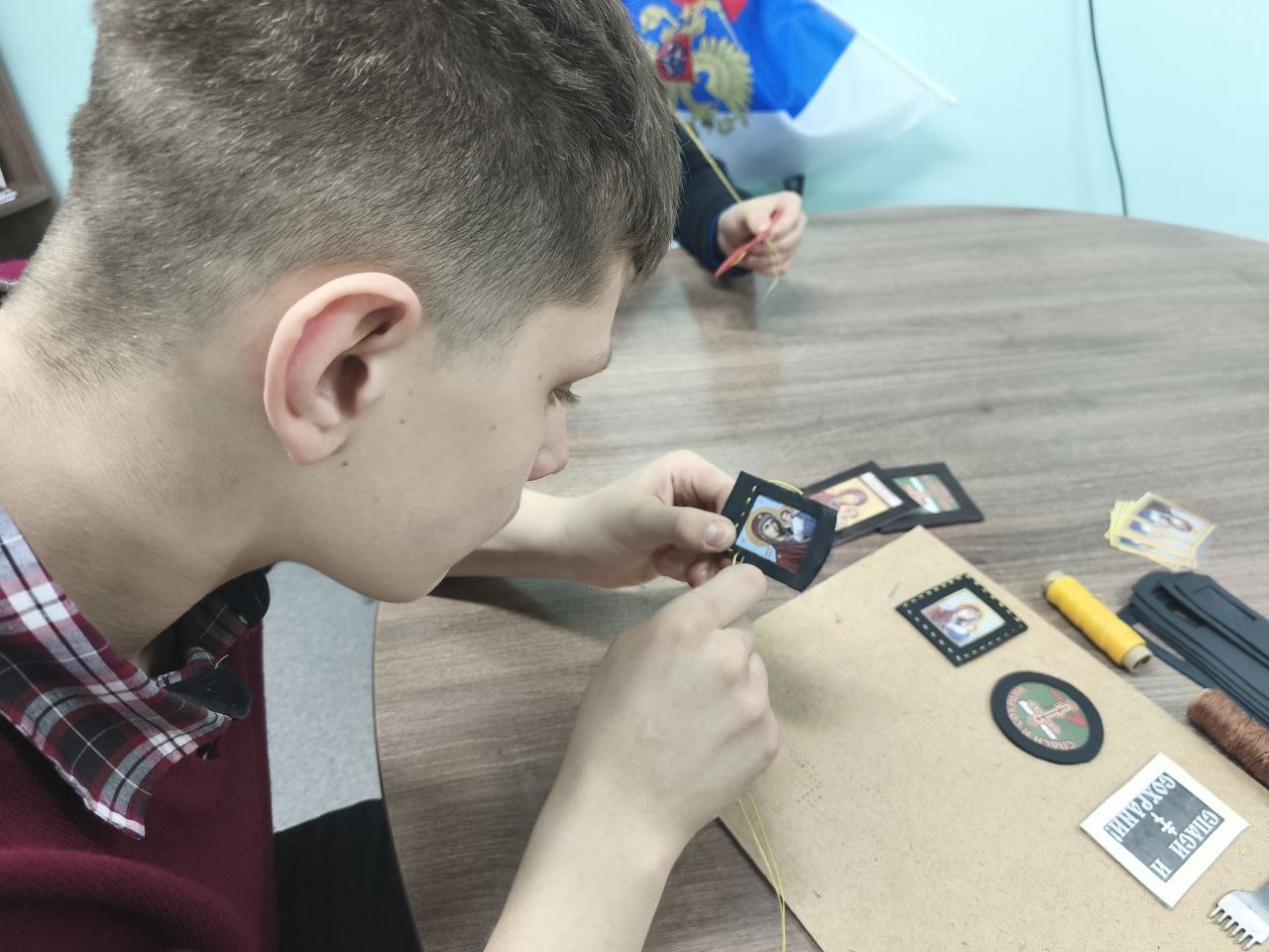 Активисты первичного отделения Движения Первых неманского СУВУ приняли участие в акции в поддержку солдат в зоне СВО «Оберег для солдата». На кружке «Декоративно-прикладное искусство» ребята сделали иконки в рамке из натуральной кожи.
