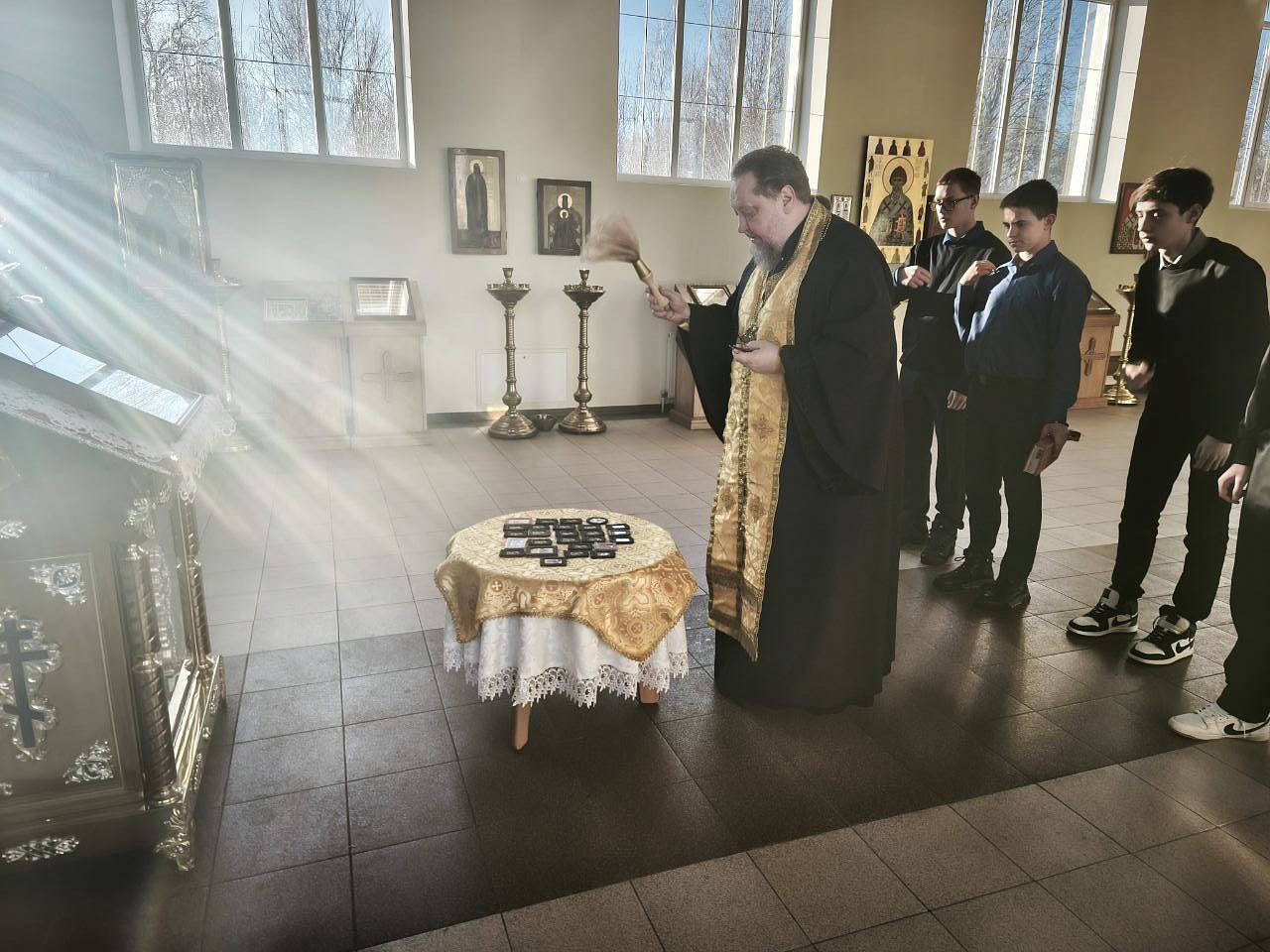 В храме во имя святого Великомученика Пантелеимона Целителя в городе Неман настоятель Отец Серафим, наставник наших обучающихся, осветил иконки. В православном богослужении не бывает случайных церемоний. Освящая, священнослужитель читает молитву и призывает Божественную благодать и защиту на христианина.