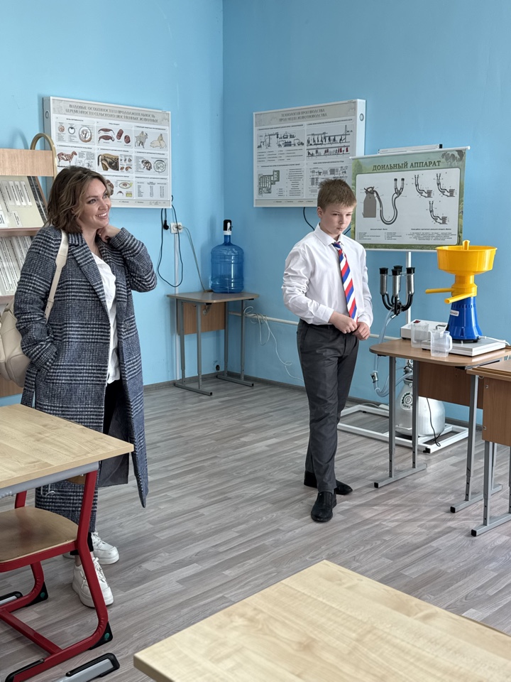 Учебный класс «Кормление и содержание сельскохозяйственных животных»: мастер производственного обучения И.В. Клушенкова вместе с обучающимися показала, как проходит подготовка по профессии «Животновод». На примере закладки яиц в инкубатор один из студентов рассказал о получении знаний в области птицеводства. Гостей также ознакомили с макетами доильного аппарата, сепаратора, брудера для выращивания цыплят и интерактивными стендами.