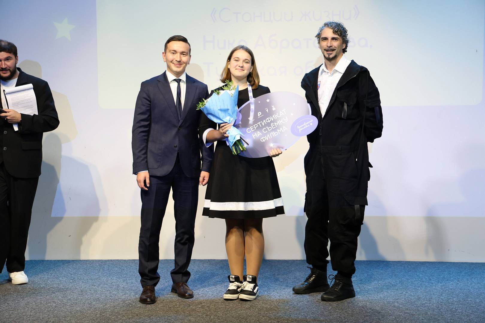 Специальные призы финалистам вручили начальник отдела кино и театральных проектов Движения Первых, эксперт заочного этапа конкурса «Вдохновленные детством» Екатерина Сатина, а также генеральный директор первой национальной киноплатформы детско-юношеского контента «КИНОСФЕРУМ.РФ» Николай Дубовой и креативный продюсер Борис Хлуднев.