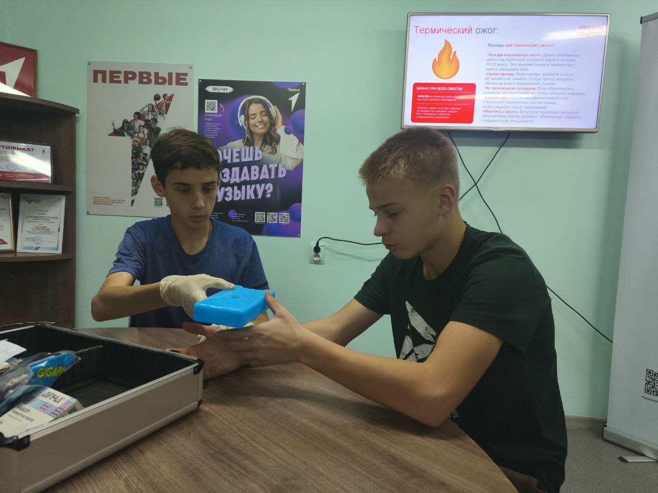 В этот раз во время уроков ребят познакомились с правилами оказания первой помощи при ожогах и отработали полученные знания на практике. Узнали, какие медицинские препараты при ожогах нужно применять, а какие действия категорически запрещается делать.