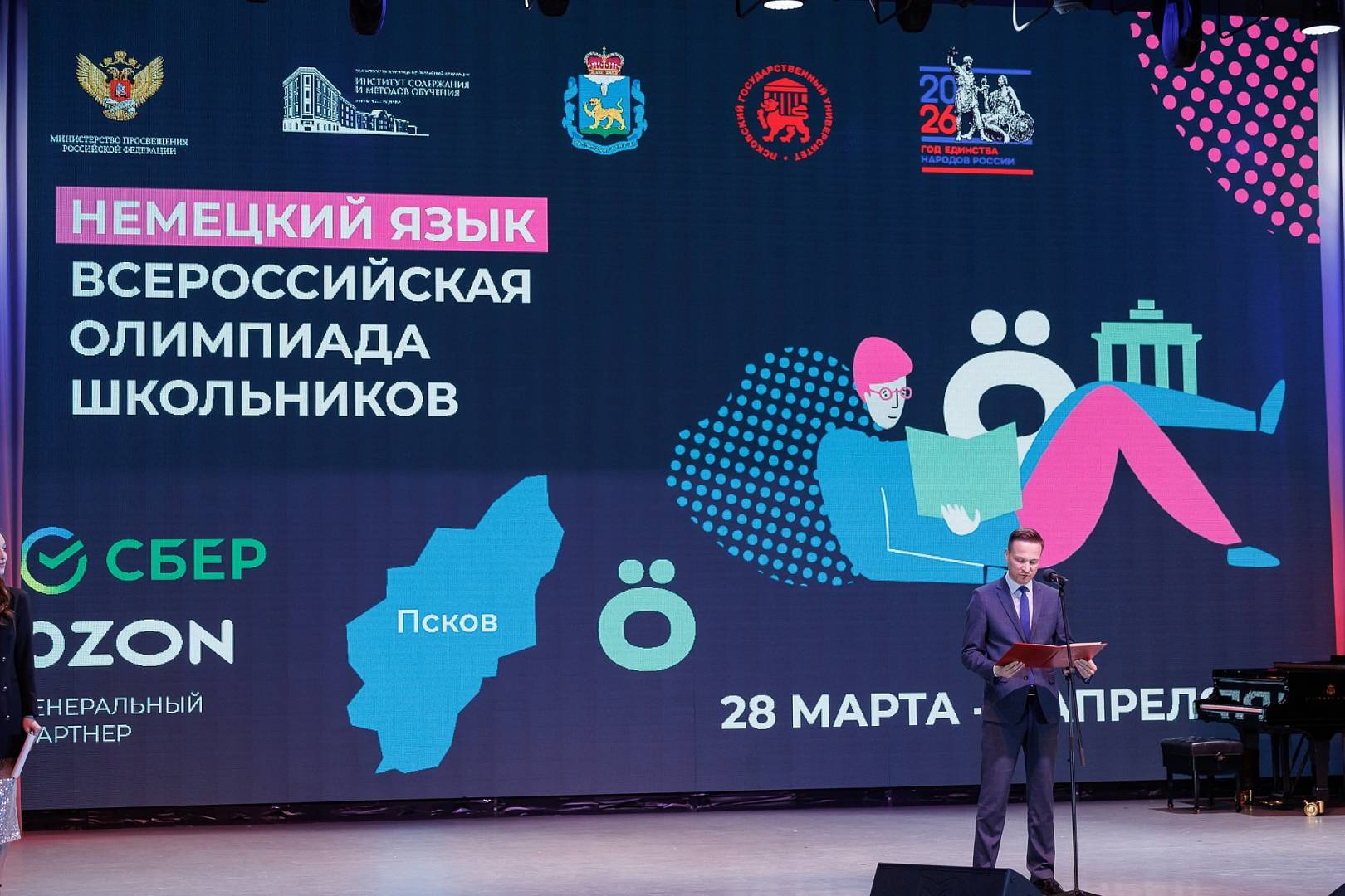 Александр Сорокин передал участникам поздравления губернатора Псковской области Михаила Ведерникова. Глава региона в приветственном слове к финалистам отметил, что ребята не просто соревновались в знании немецкого языка, но и продемонстрировали глубокое понимание культуры, истории и межкультурного диалога, а также назвал путь от школьного этапа олимпиады до финала большим достижением, требующим упорства, терпения и стремления к знаниям.