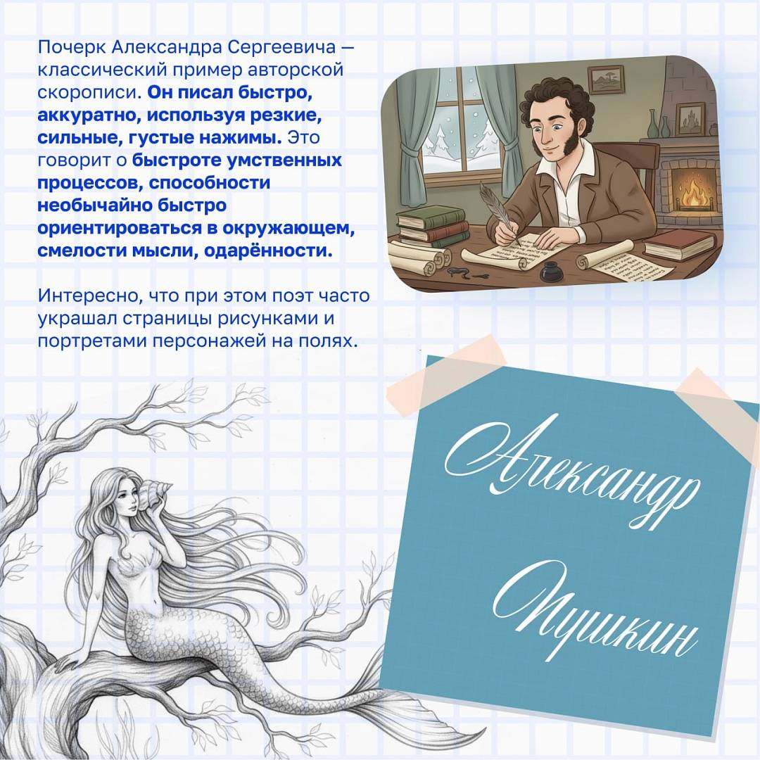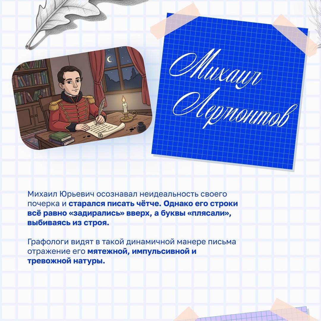 Даже великие классики, чьи слова знакомы каждому, оставляли после себя настоящие графические головоломки. Что может рассказать почерк о человеке? Как писали самые известные русские писатели и поэты? Как называется специалист, который профессионально изучает линии и завитки? Листайте карточки!