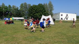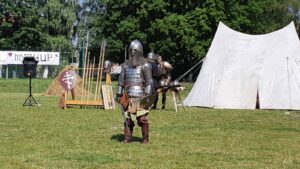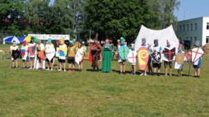 Участники исторического клуба показали рыцарские бои, мастер-классы, провели турниры с нашими ребятами. В завершении праздника все стали участниками выставки вооружения и примерки рыцарских доспехов.