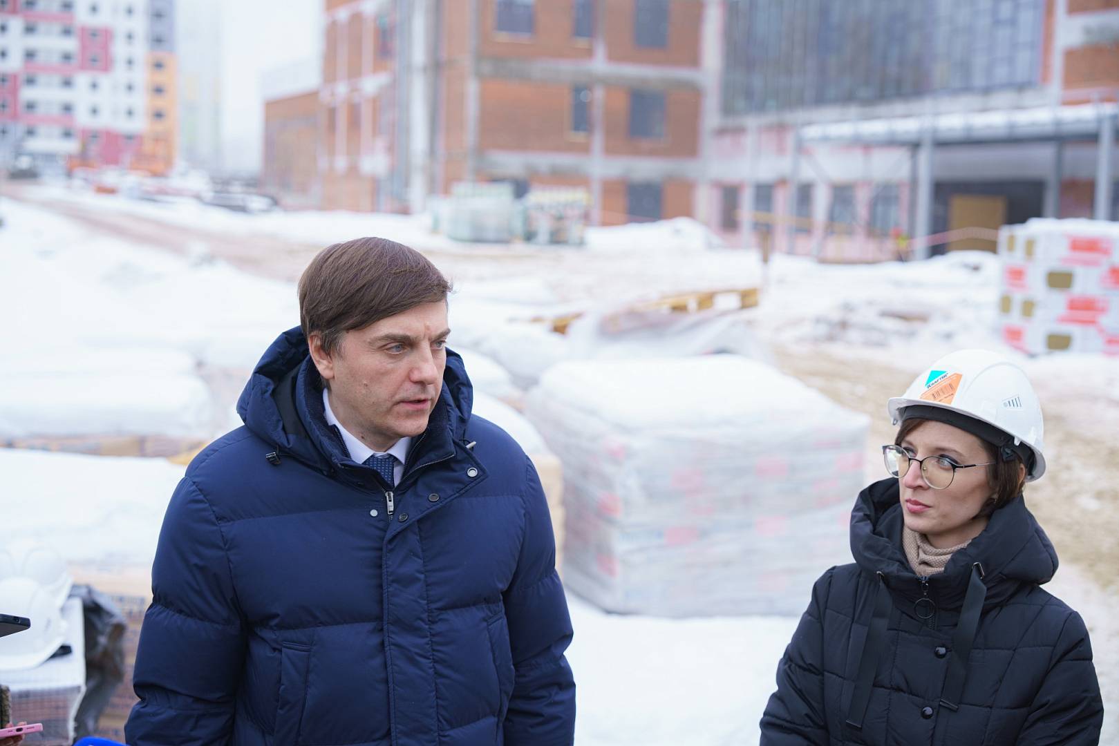 Объект возводится при участии компании «ПроШкола» (входит в Группу ВЭБ.РФ) в рамках концессионного соглашения. В ходе визита Министра сопровождали генеральный директор ООО «ПроШкола», заместитель губернатора Курской области Оксана Крутько, главный управляющий директор ВЭБ.РФ Александр Чеботарев. Строительная готовность объекта составляет 49%, а ввод в эксплуатацию запланирован на конец 2026 года.