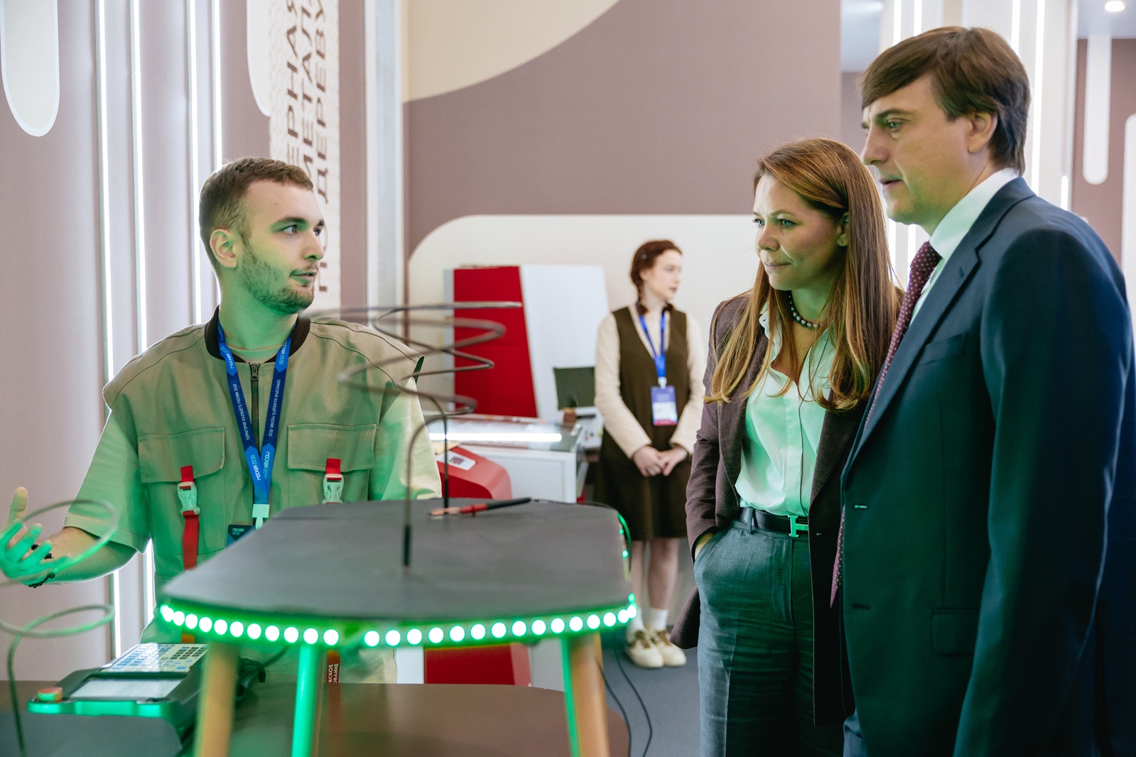 Кроме того, Министр просвещения ознакомился с экспозицией интеллектуально-выставочного пространства «Бесконечное развитие с вечными ценностями» в рамках форума-фестиваля «Территория будущего». Экскурсию для него провела заммэра столицы по вопросам социального развития Анастасия Ракова.