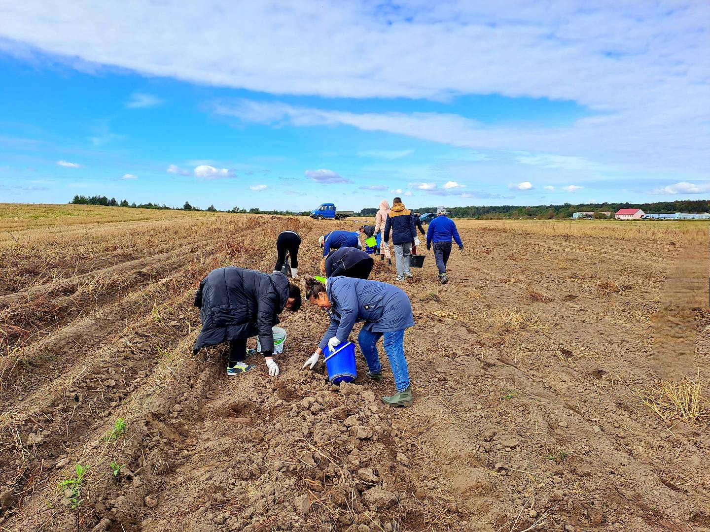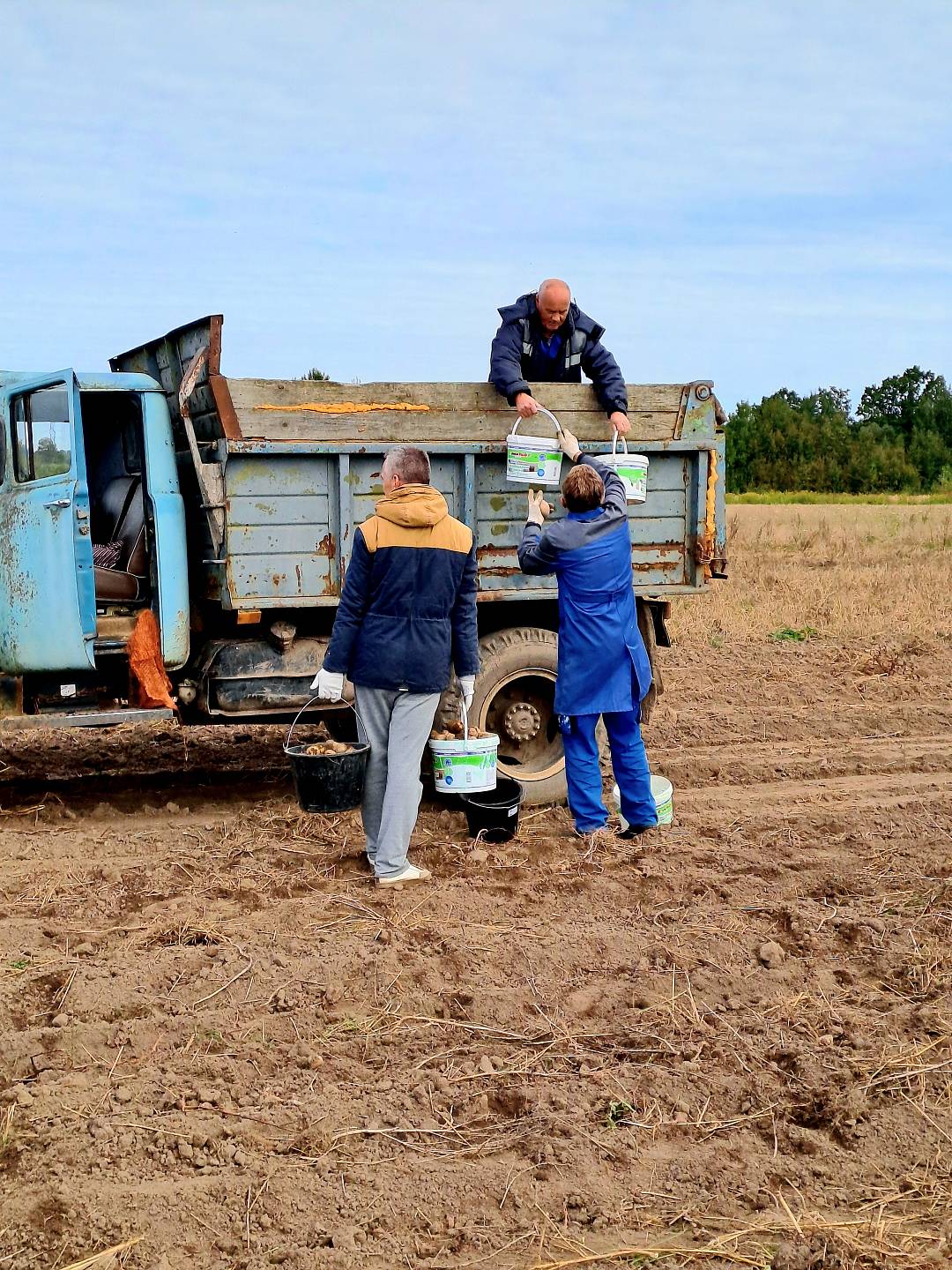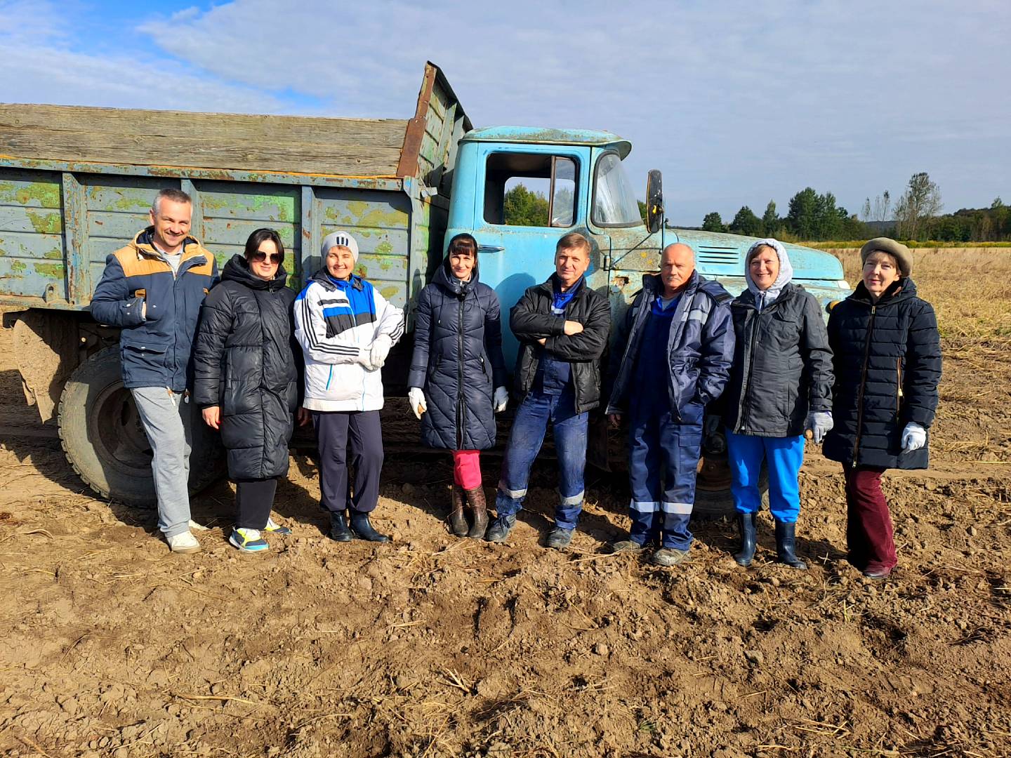 Дождавшись подходящих погодных условий, сотрудники отправились собирать картофель. Настроение у всех было приподнятое, многие за рабочим процессом шутили, смеялись, делились своими впечатлениями, помогали друг другу. В такой приятной и добродушной атмосфере картофель очень быстро оказался в кузове ЗИЛа.
