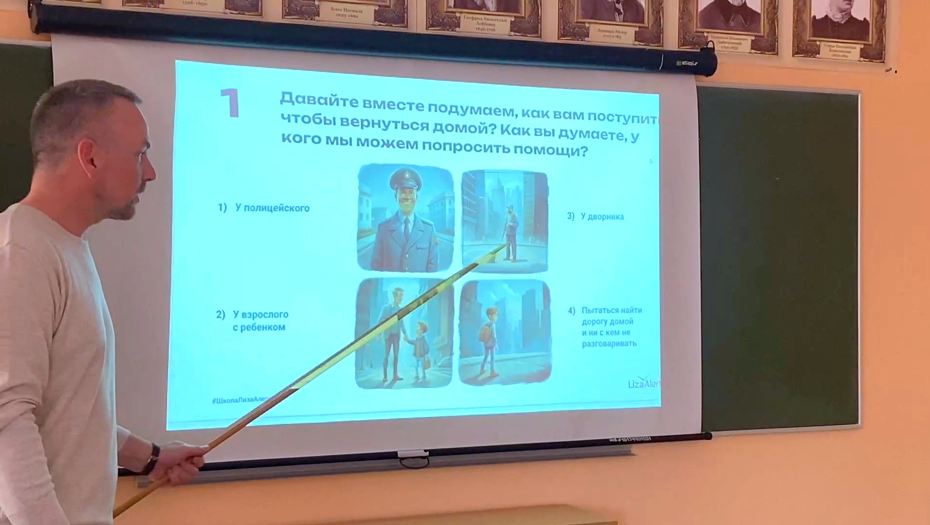 На уроке обсуждались вопросы, связанные с безопасностью обучающихся: проблематика, профилактика возможных опасных ситуаций, а также способы помощи тем, кто потерялся. Кроме того, участники урока узнали, что делать, если потерялись сами.