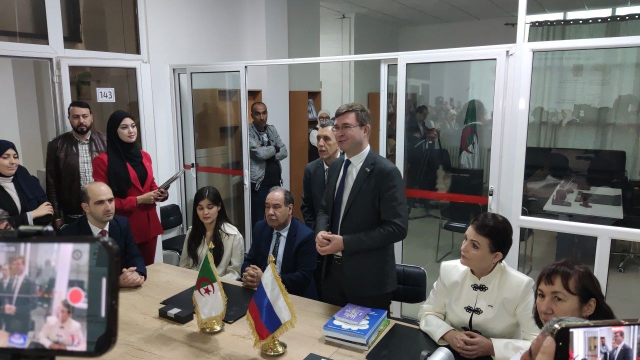 В рамках мероприятия прошла встреча Андрея Корнеева с Ахмедом Шаалалом и руководством вуза, в ходе которой обсуждались вопросы двустороннего взаимодействия и перспектива российско-алжирских отношений в области образования.
